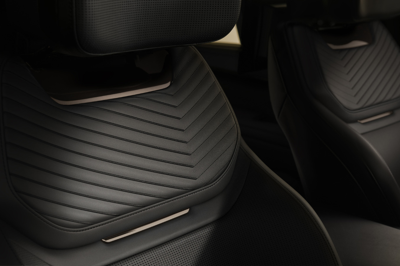 For a cool touch, the gear shifter is finished in satin black ceramic. Moonlight Chrome detailing extends to more elements than ever before, bringing a dark, moody, jewel-like finish to the entire cabin.