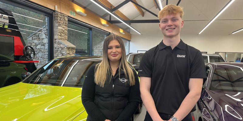 As part of their apprenticeship journey, Ellie and Fergus recently took part in a five-day residential training programme at Plas Menai. Delivered by BMW — this was an immersive experience designed to develop their knowledge, confidence and teamwork skills. The trip marked an exciting milestone in their training, giving them the opportunity to learn alongside fellow apprentices from across the network.