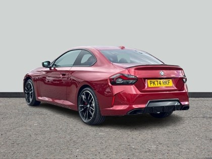 2024 BMW 2 Series M240i xDrive in Fire Red, 21,845 miles, petrol with 27.97mpg. M Sport Pro, Parking Assistant, red leather interior, alloys, and BMW Warranty to Sept 2027.