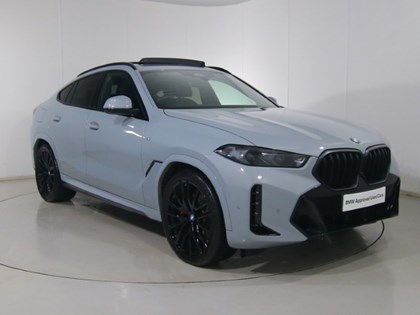 2025 BMW X6 xDrive40d M Sport demonstrator in Brooklyn Grey, diesel with 37.66 MPG, featuring Technology, Comfort and M Sport Pro packs, Black Merino leather and BMW warranty until November 2028.