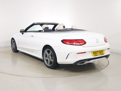 Sleek 2017 Mercedes-Benz C-Class Cabriolet C200 AMG Line Premium Plus, 2dr auto with 26k miles, finished off in the stunning metallic white trimmed perfectly with the Blue Soft Top.